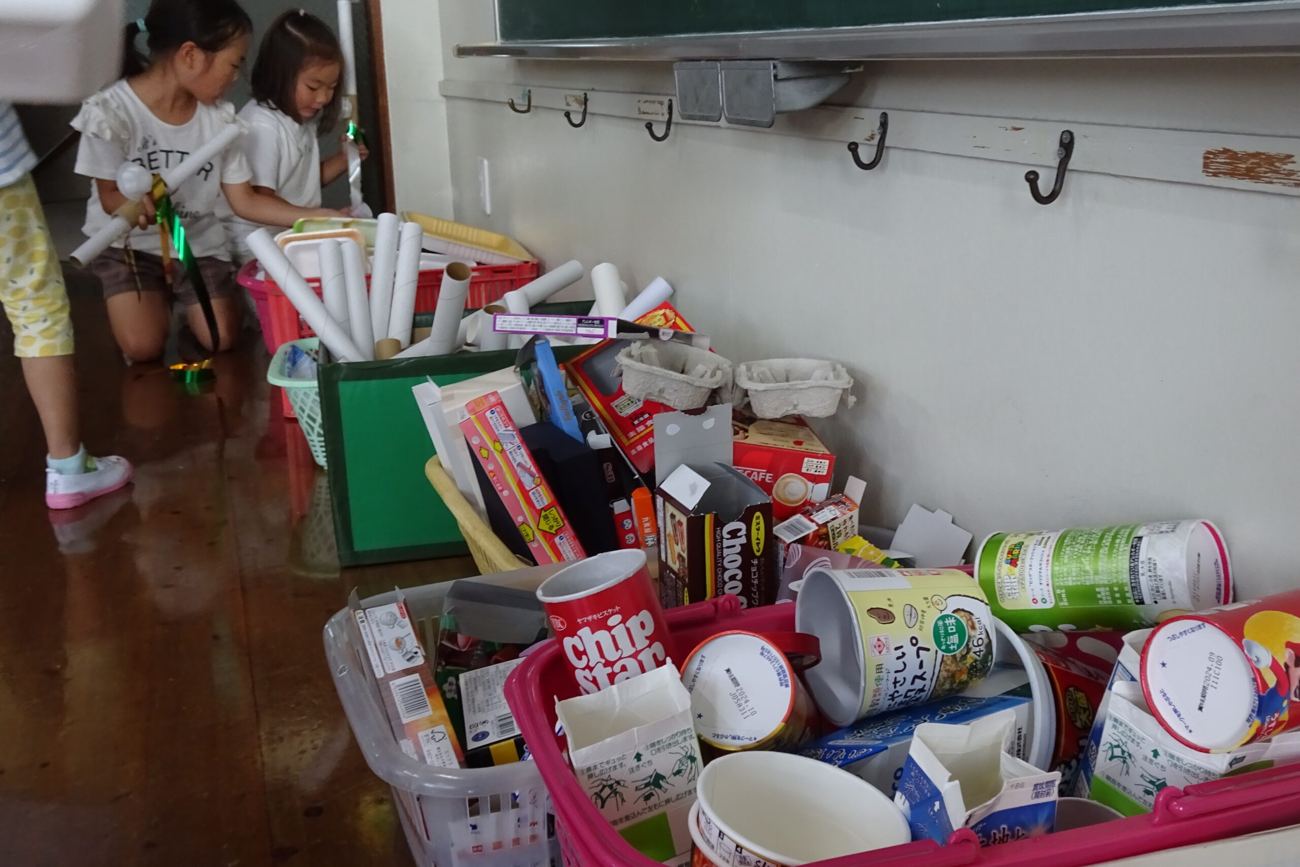 6月13日(木)です。本日年長の子供たちが、お菓子の空き箱などの廃材を持ち寄り、それらを材料にして思うままに創作活動に取り組みました。100%自分たちの世界で繰り広げられる活動の中で、子供たちの創造力はどんどん膨らんでいきます。