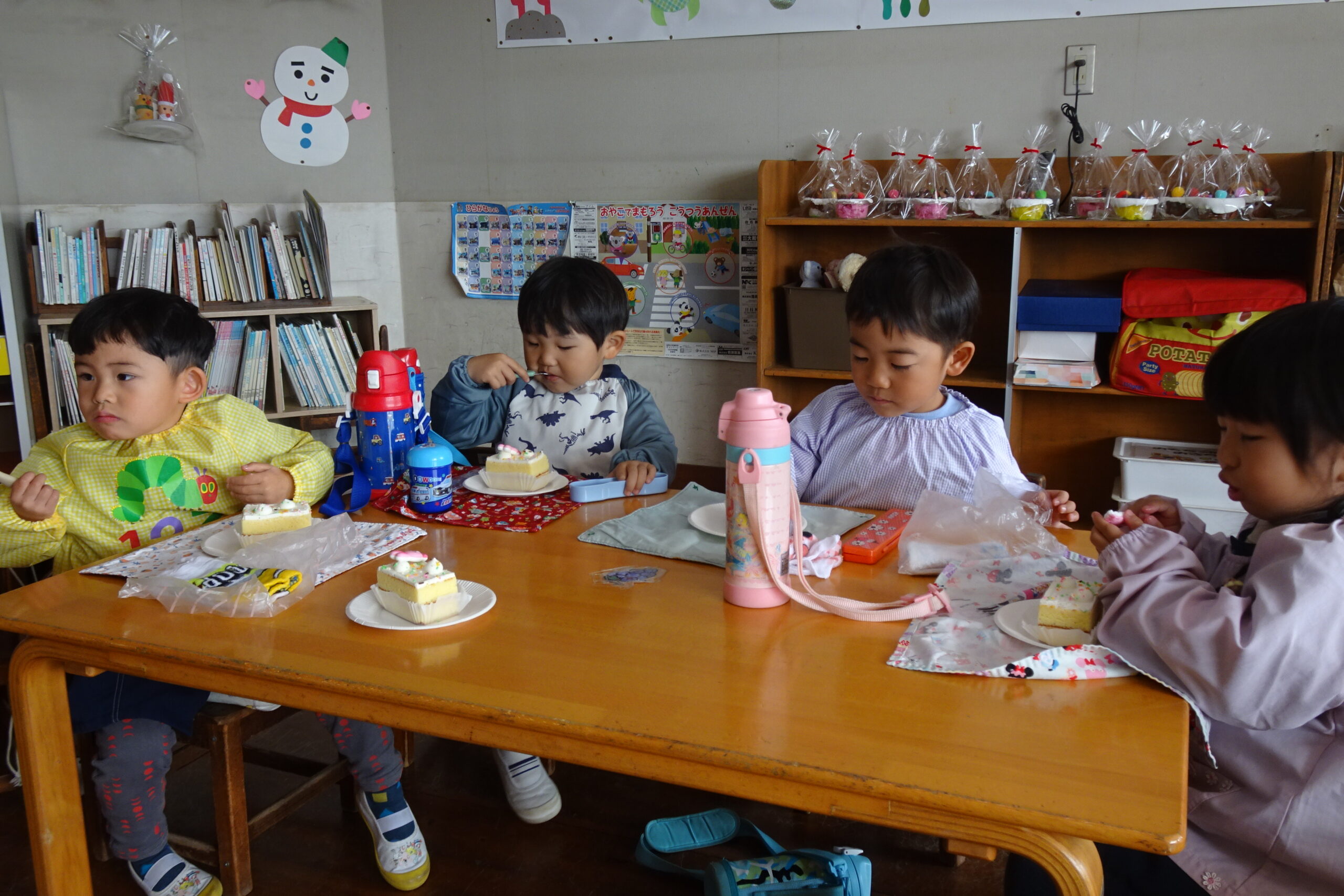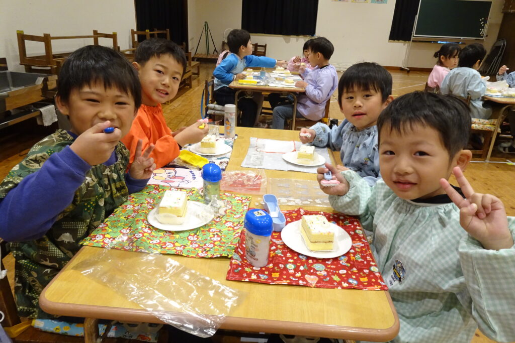 12月12日(金)です。楽しいクリスマスが近づいてきました。今日はあすなろ幼稚園でもクリスマスケーキを用意して、パーティー気分を味わいました。来週の月曜にはクリスマス会を開きます。