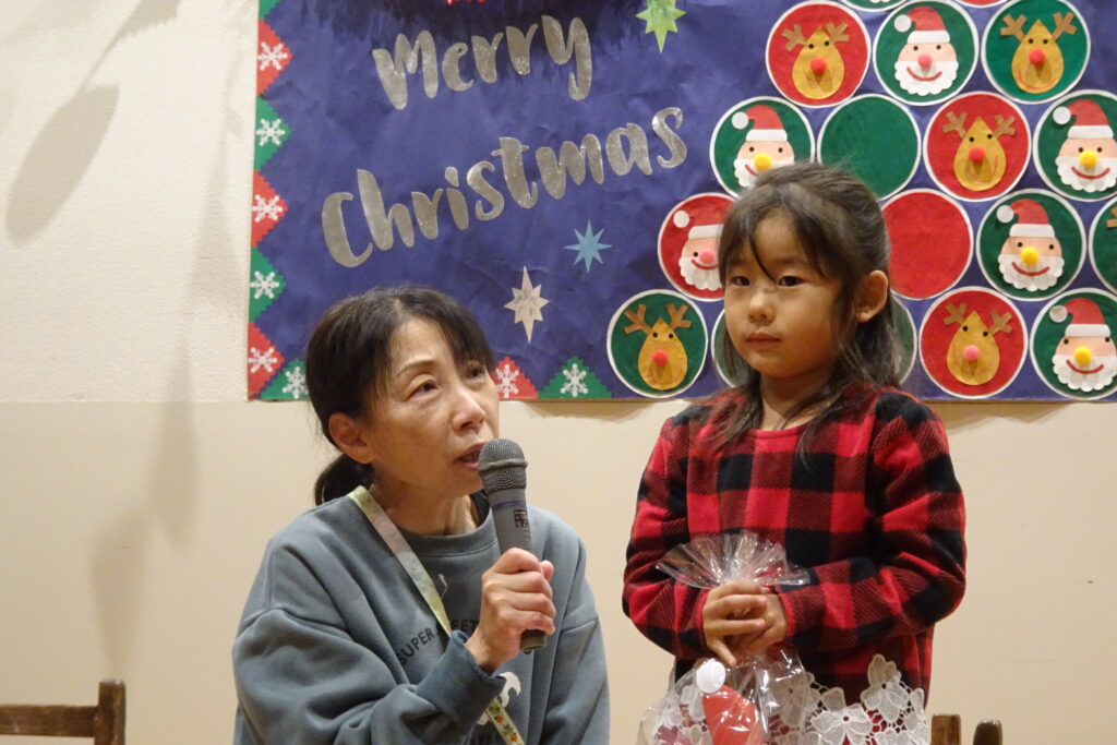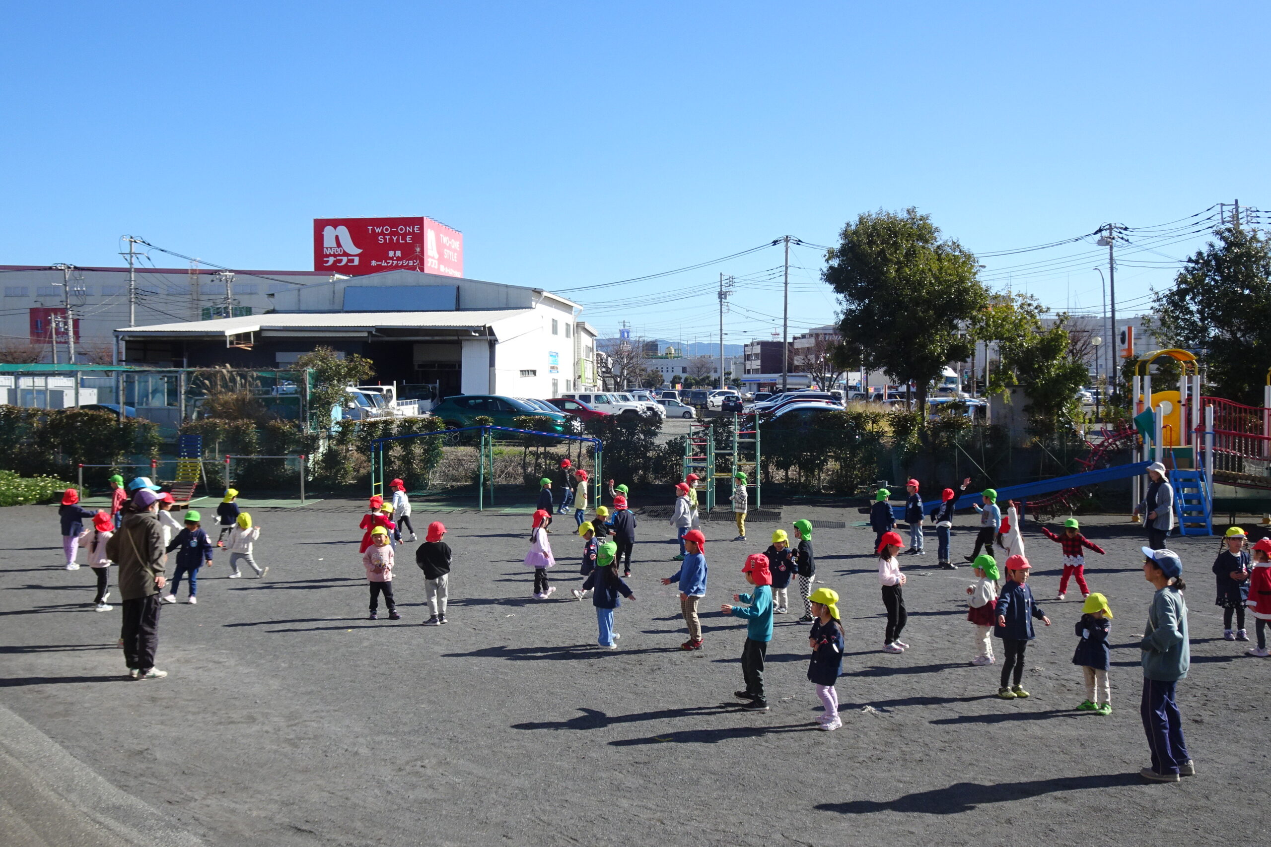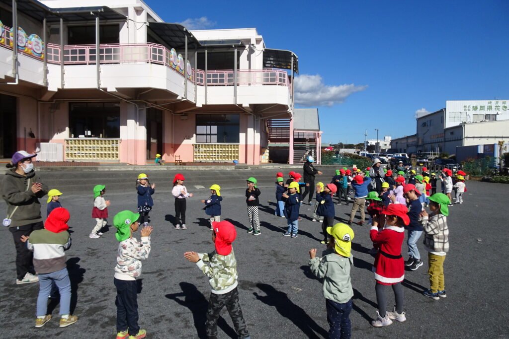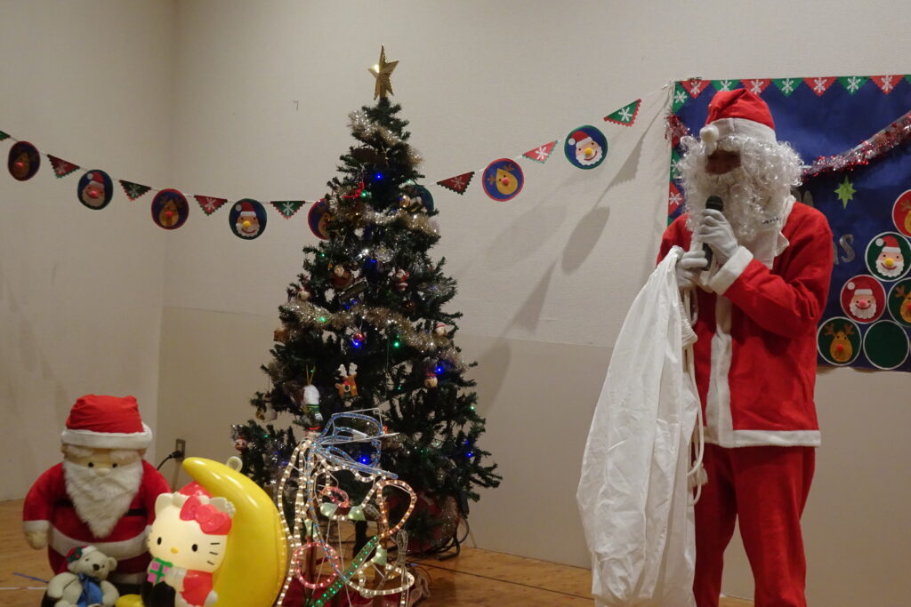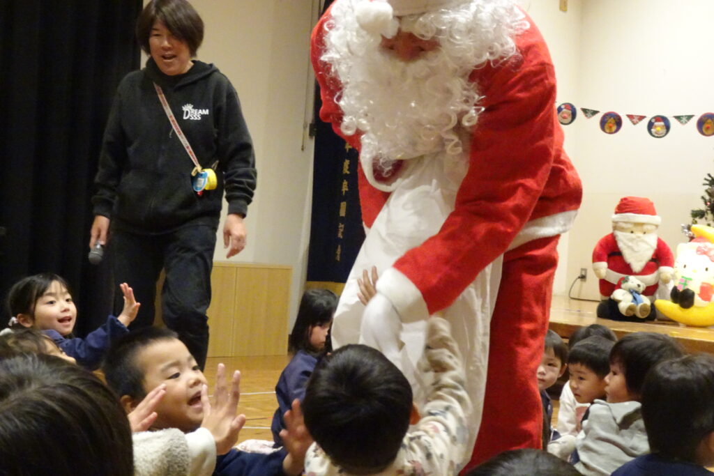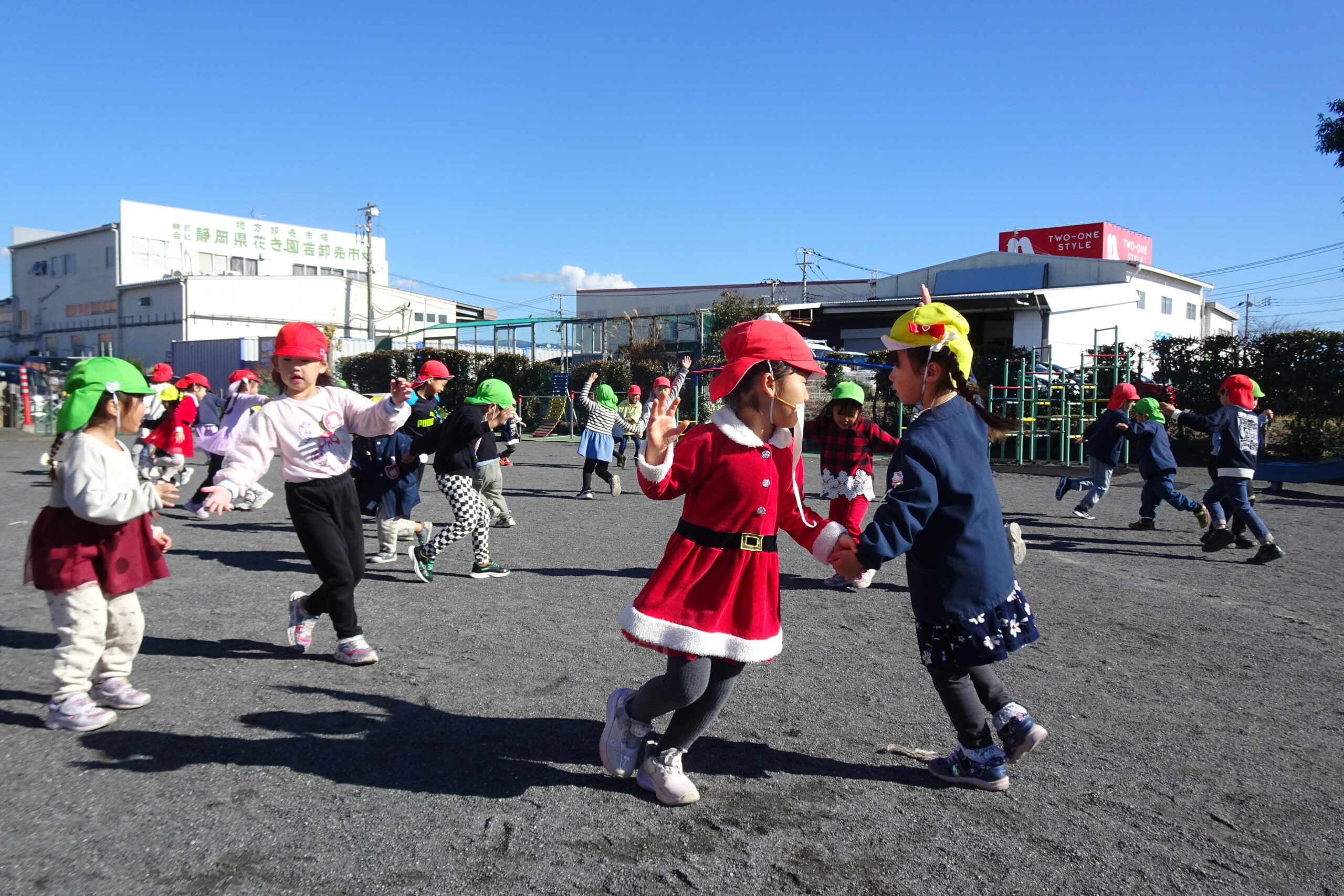 12月15日(月)です。今日は楽しいクリスマス会。しかも、あすなろ幼稚園にサンタさんが来て、みんなにプレゼントを運んでくれました。会の後はとても良い天気の下で、クリスマスフォークダンスで楽しみました。