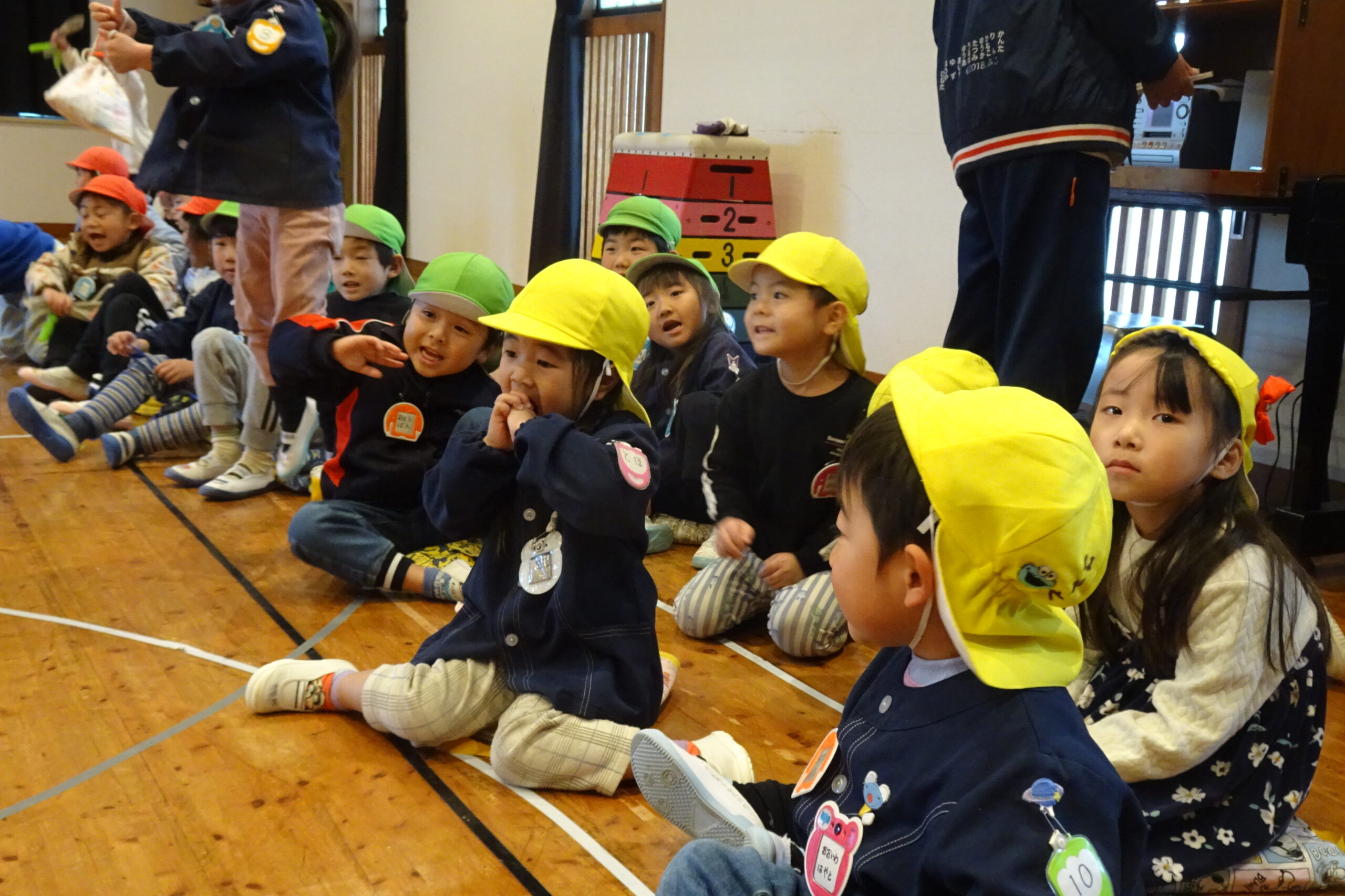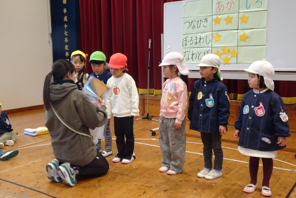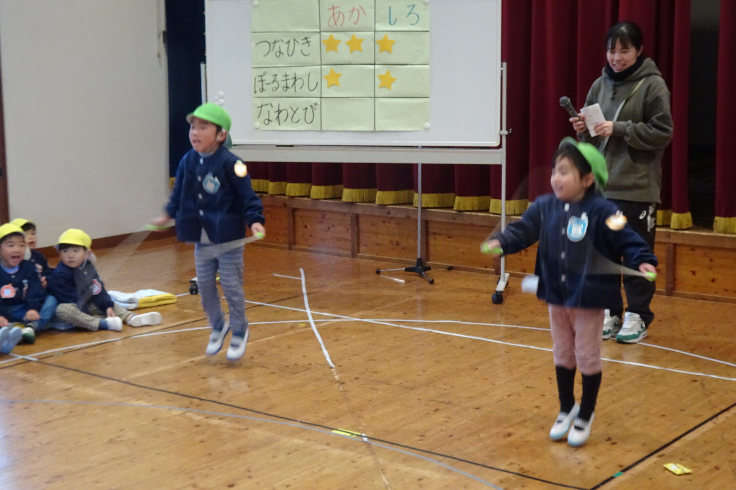 1月22日(木)です。本日、1月の誕生会を開きました。今回は、赤組と白組に分かれて、綱引き、ボール回し、縄跳びの対抗戦を行いました。みんな元気に頑張ることができました。