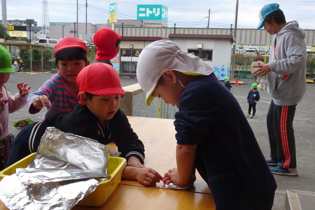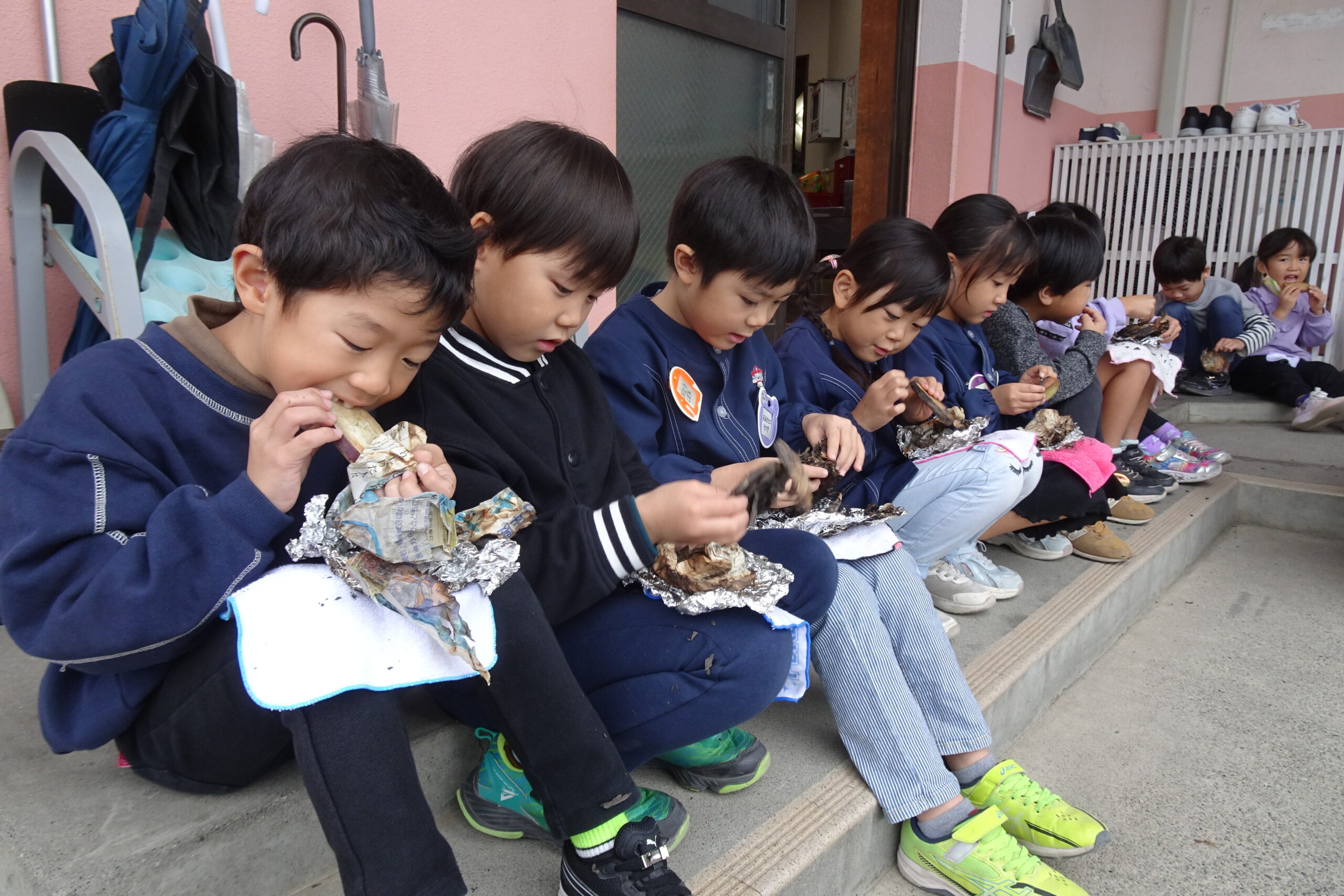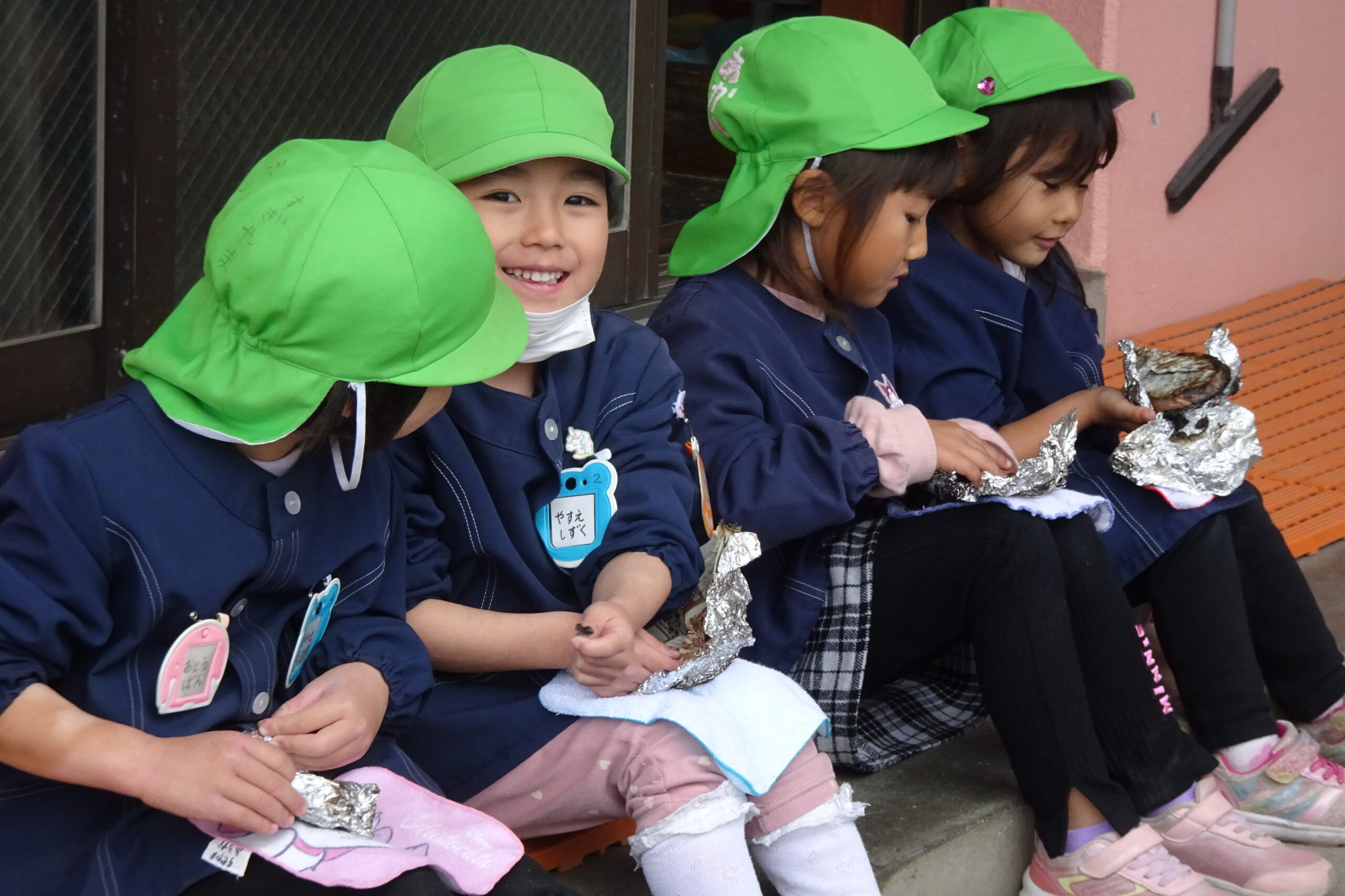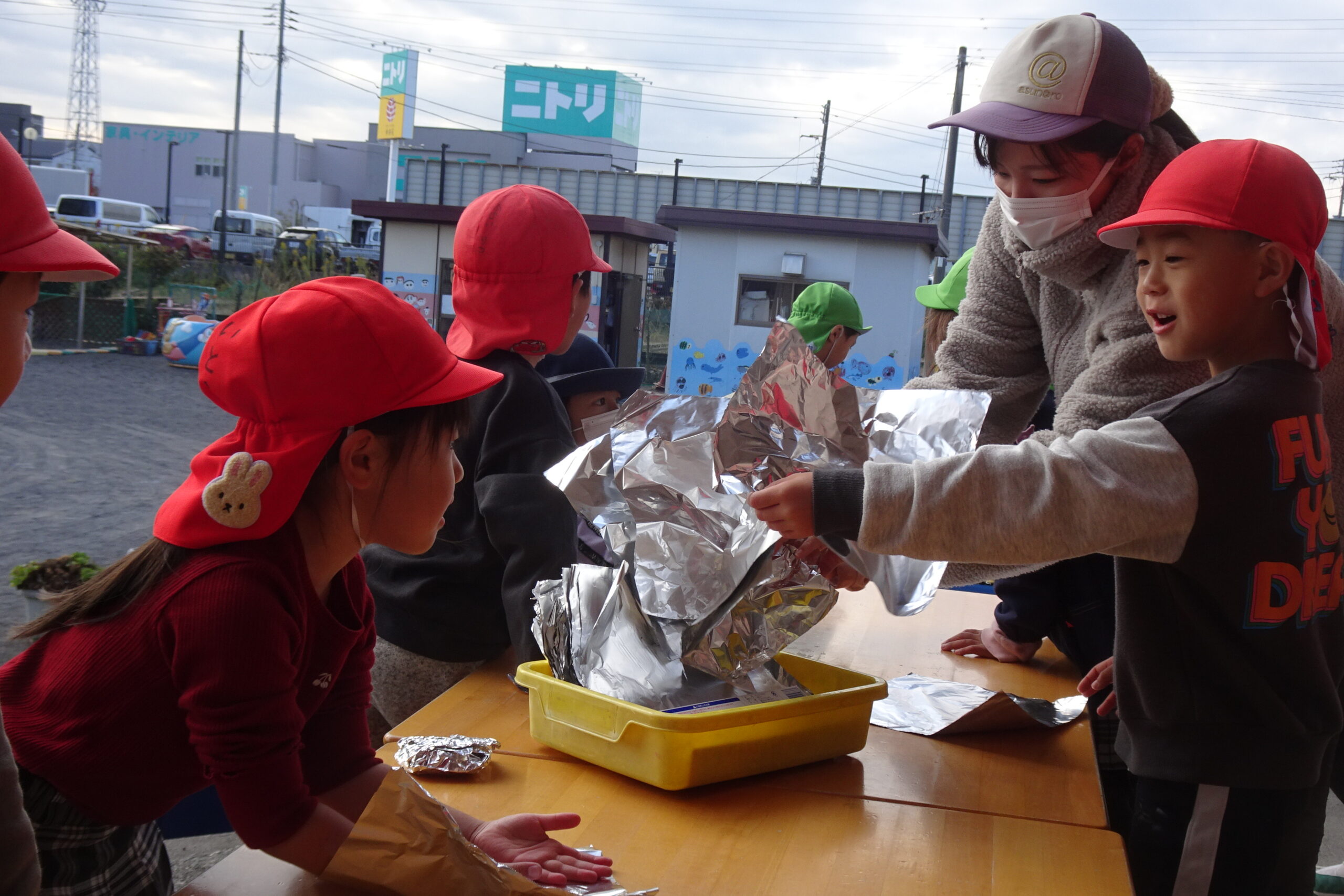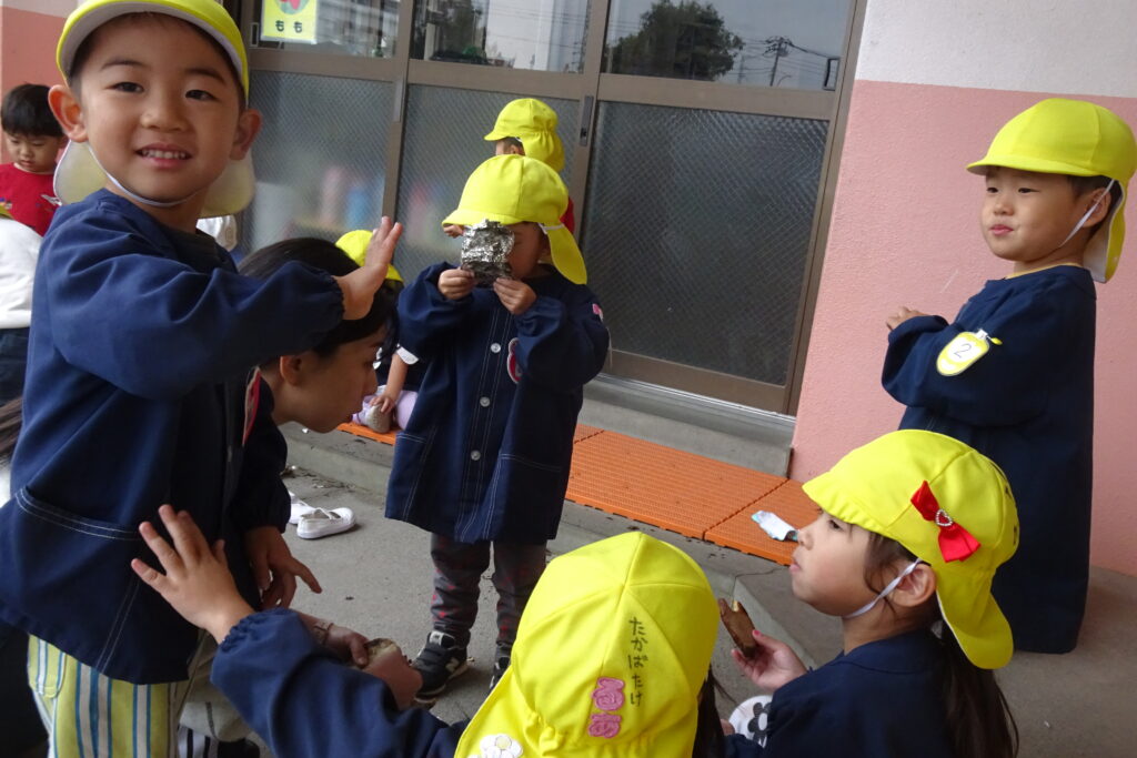11月27日(木)です。先日の芋掘り体験で年長組の子どもたちが掘り起こしたさつまいもを、本日焼き芋にしていただきました。お味はいかがでしたか?