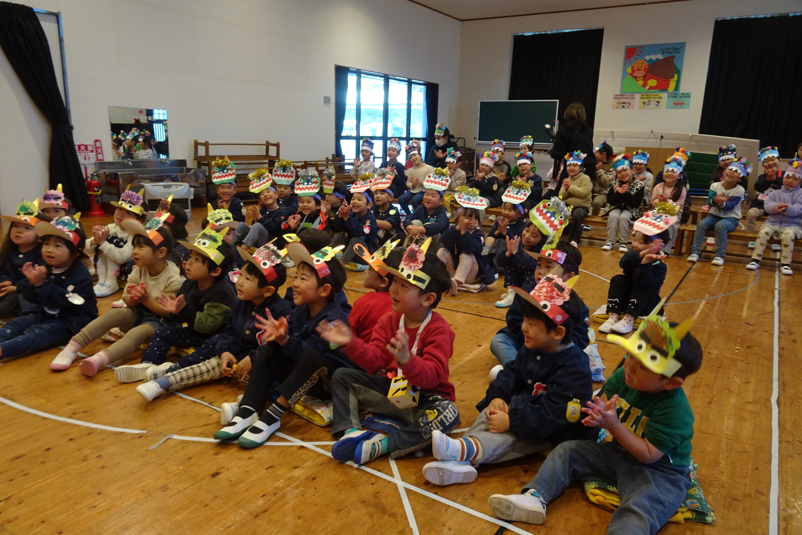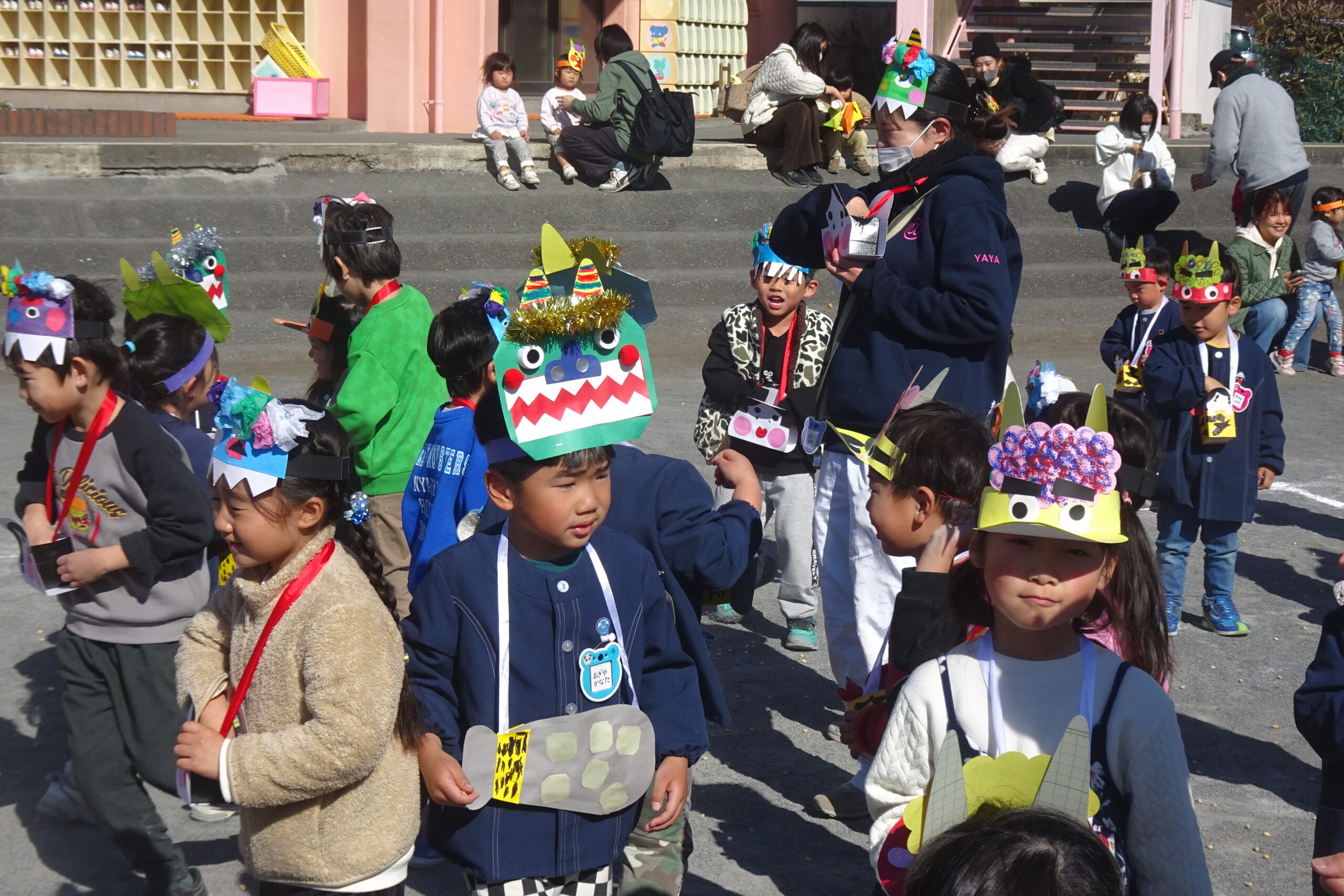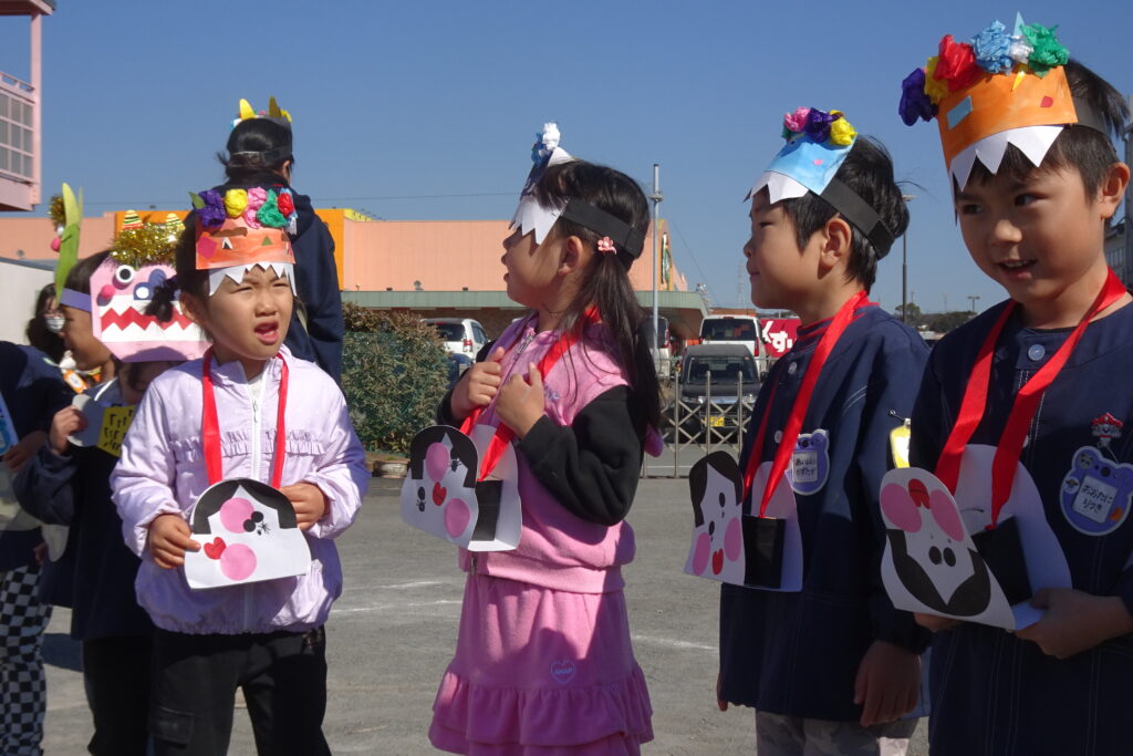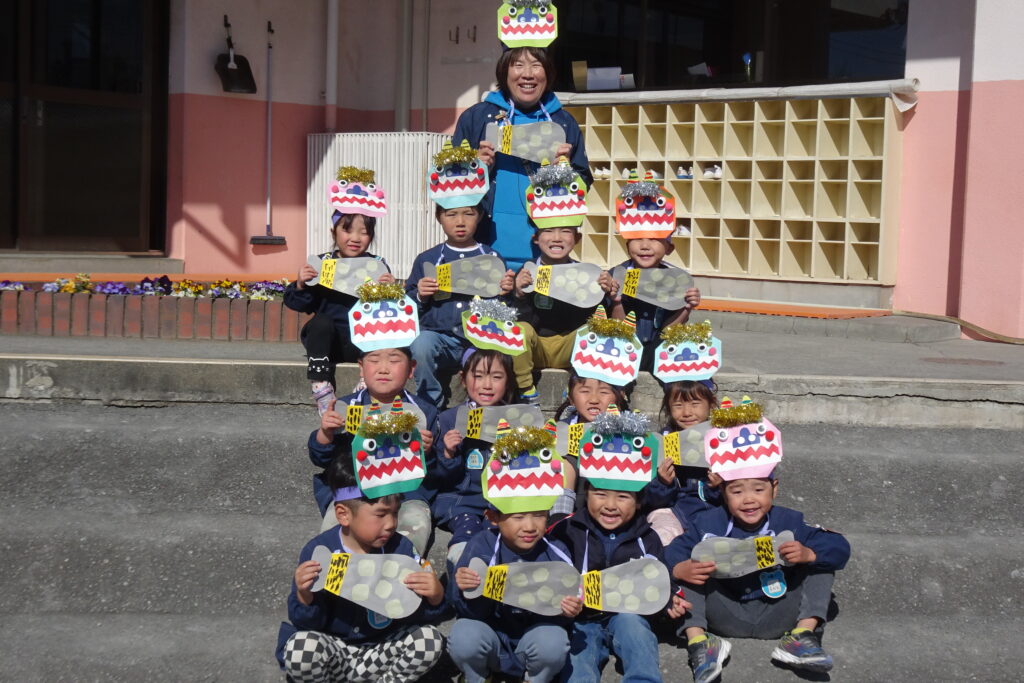 2月3日(火)です。風もなく、穏やかな陽気です。今日は節分、あすなろ幼稚園でも園児たちが豆まきをしました。心の中の鬼を退治して、福を招きましょう!